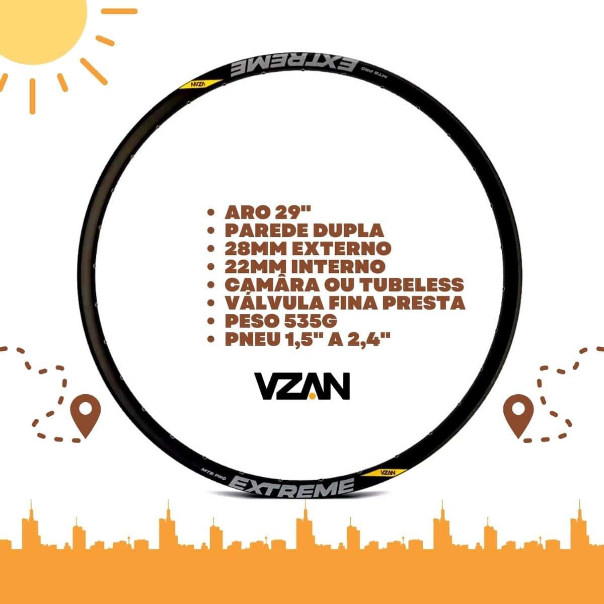 O Aro Vzan Extreme PRO Disc 28 Furos foi desenvolvido com perfil diferenciado proporcionando leveza e resistência à sua bike. É um dos aros mais utilizados pelos praticantes do MTB.